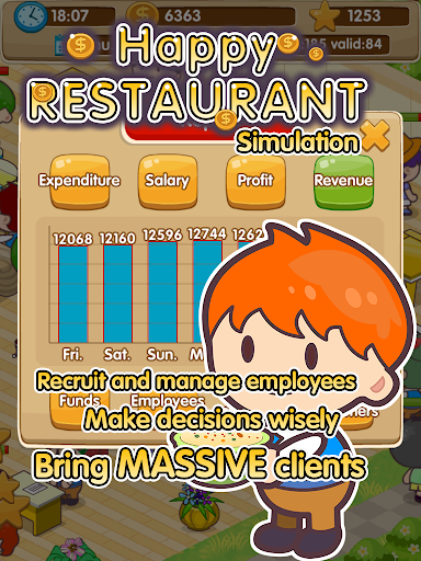 Happy Restaurant is a business simulation game which runs on tactics. With your wisdom,you make it become bigger and richer,bring spectacular traffic and huge revenue.