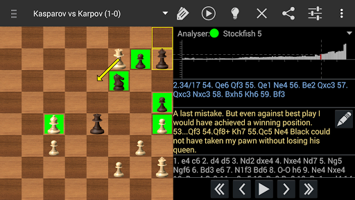 • Analyze completed games in their entirety using up to 4 UCI chess engines, with all analysis results displayed graphically. ★