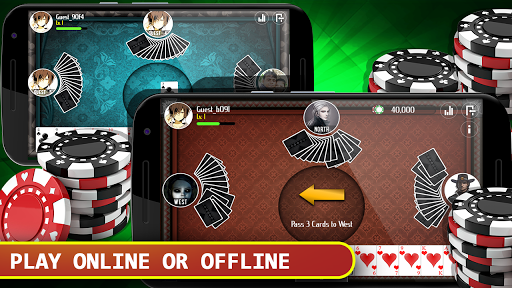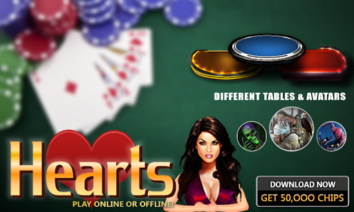 Hearts takes place in 10 real world locations with real chips! Players can choose which table to play depending upon their chips balance. You can choose to play Hearts from Atlantic City to Macao and enjoy the feel of a Real Hearts Casino on your Android.