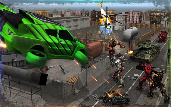Helicopter Transformation Robot: Flying Robot Car brings you to the edge of transforming robots simulator. Enjoy fighting alongside of transform robots and enjoy the featuring transform robot. Play with all the new and fantastic robots with their awesome transformations and amazing new weapon and updates. Fight in your own way and kill gangster robots causing trouble in your city. You have to protect the robot city. Play as the savior of mankind and robot-kind as well. Command the largest transforming robot force on planet earth.