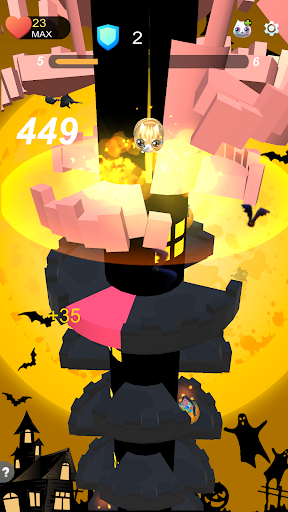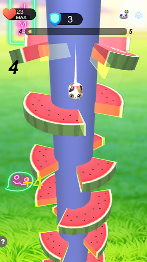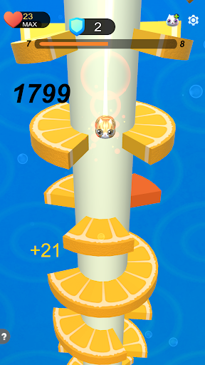 Swipe the screen to jump your cat and fall through helix tower, cut them delicious fruit slices and listen to the music!