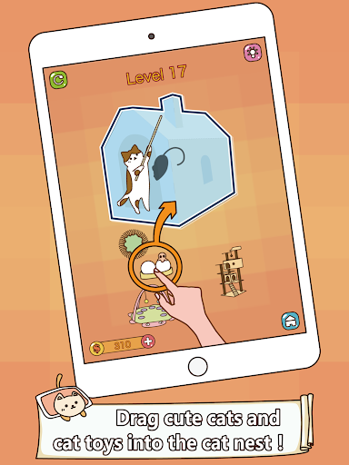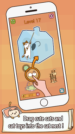 You just need to drag all cat's and cat's toys on the cat nest and keep all stuffs without collision or crash.