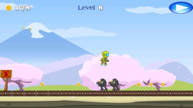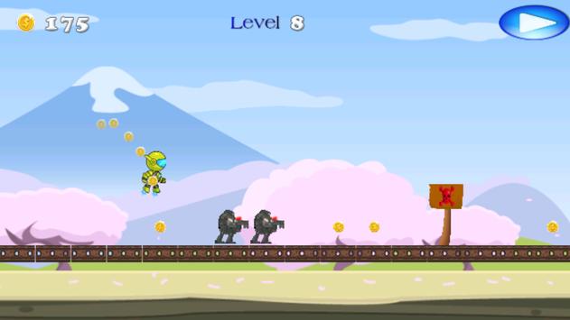 Hero robot run super game jump and run to collect the coint by cross through the monster and mad robot We must help the robot runner by tapping the screen to collect points by jumppig to go to the next level. Enjoy to play Hero robot run super game.