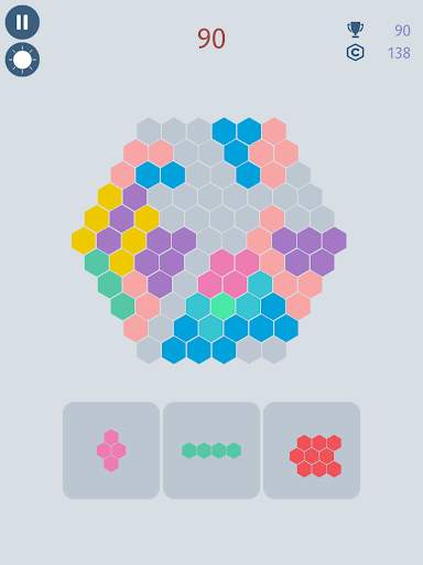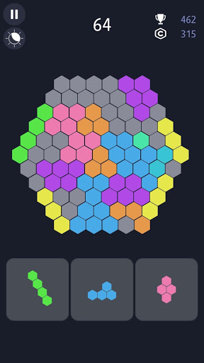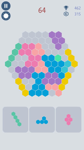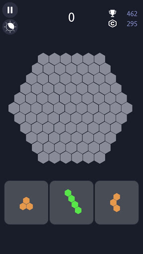All you have to do is to place hexagonal block pieces to the empty spaces in scene. Try to create a full line to destroy that line and earn more points. Colors have no effect, as long as you are able to place blocks, everthing is fine! How far you can go?