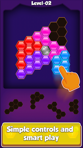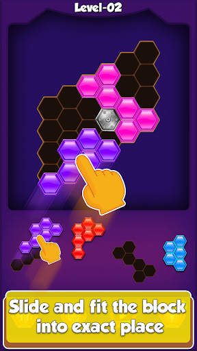 Hexa block puzzle game for all ages. Only Rule of the game is to Drag the Hexa puzzle blocks and aim for the appropriate blank space on the grid.