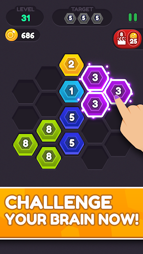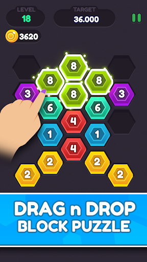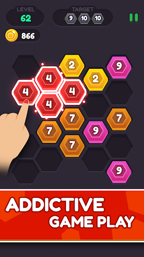 Hexa Puzzle Connect is a simple color matching game to merge number in the hex block. Start your journey to this Hexagonal blocks world and enjoy tasty sweet treat of destroying sweet color blocks. You can enjoy block smashing and different types of crushes in the hex blocks world. Consume them all to pass the level. Hexa Puzzle Connect & number merger is a bit different from the typical classic crush games because in here you have to get a score to pass a level.