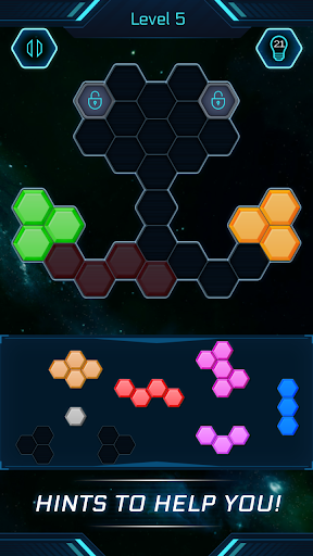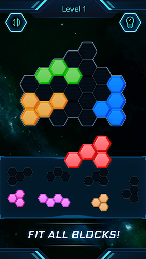 It is a simple addictive hexagon block puzzle game with lot of interesting and challenging levels to play. Drag the hexa blocks and fix it up inside the empty space to complete the level. Complete all levels and have fun playing it in the space theme.