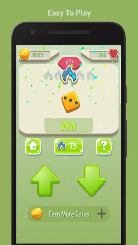 This game is all about luck and probability where players are faced with a 50/50 chance to win . Players are provided with 2 main buttons to select, buttons are 'Hi' Button and 'Lo' Button. You can press only one button at a time, If you Pressed 'Hi' button then the dice will roll & drop on the board, If upside face of the dice shows the Higher number Than pervious dice number then you will win and you will rewarded one coin Or otherwise if the dice upside face shows Lower number Than pervious dice number then you will lose and one heart point will be deducted from your heart balance. You can refill your heart at any time by clicking the heart icon at the top right corner of the game screen.