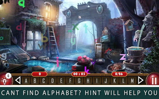 Get ready for challenge of finding hidden 26 letters from the beautiful pictures. "Find - hidden letters " is one of the top rated best hide seek game to kill time pass with beautiful challenging mansion rooms or goals. first and last Simple rule or goal is to find 26 hidden letters from the pictures of rooms , garden , hospital , mystery crime case , beautiful nature, kids , animal , flower to find the alphabets and unlock new levels and use hints to solve difficult level. This version of Hidden Letters game is totally free to