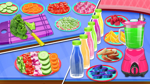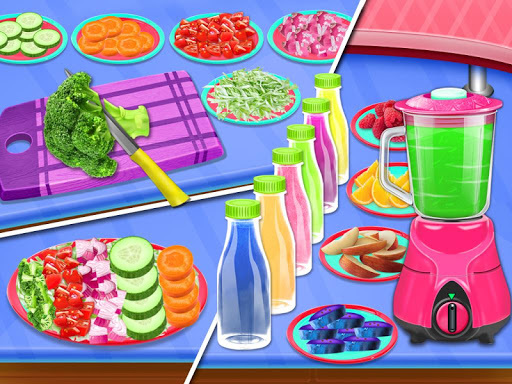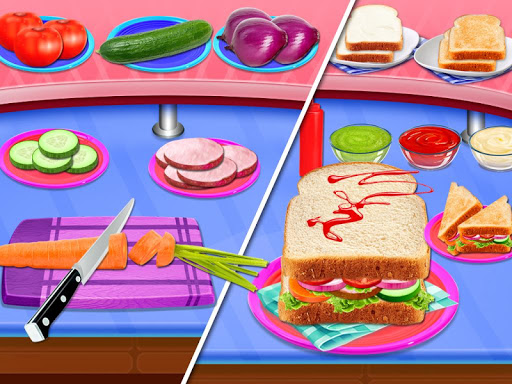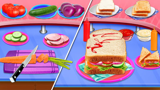 Healthy Salad dish consisting of small pieces of vegetable like cucumber, tomato, carrot, broccoli, onion which contain low fat, A sandwich is a food typically consisting of vegetables, sliced cheese or meat, placed on or between slices of bread. Various healthy juice like apple, orange, kiwi, banana for diet.