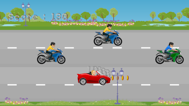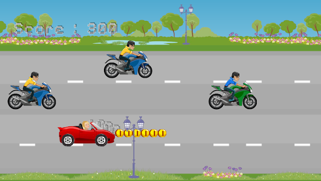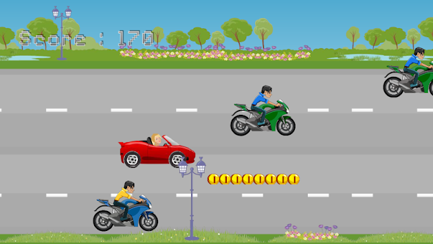 Miss Barbie drives car. Lovely barbie racing and collects all coins. Collect all coins and don't bump obstacle or other racer to make best score.