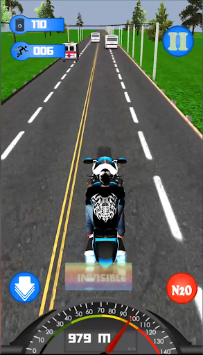 The best highway stunt bike racer on the store! Whether you're crazy for bike racing speed or just learning to ride, slap on your helmet and experience the blood boiling speed bike dash! Zoom down the city highway, swerving past road traffic with no limits!