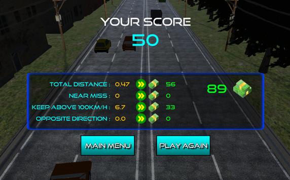 *While driving in more than 100km/h speed, you can gain extra points and money with close cross to other cars