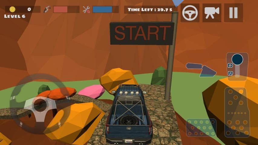 You will see in the upper right corner of the first screen you'll see a Settings option, you can choose how you want to control the tool by clicking this option. You can adjust the position of the pedals and the steering wheel as you like, without using the steering wheel sensor jihadist selecting your sensor if you wish, you can direct control with tools. Located right of the screen lets you go back in gear with the letter D with advanced R, you do not press the brake press brake tool can make even the hard stop. Completely to avoid damaging the vehicle is not possible to change gear without stopping the vehicle brake by holding down the option to use the reverse you have to completely stop.