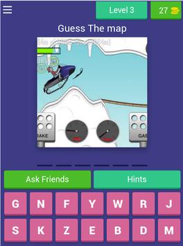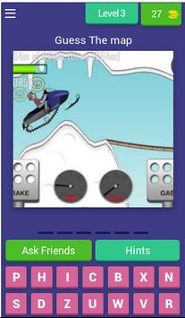 Guess the cars and maps from Hill Climb Racing Have Fun!!!! Lots of HD pictures Lots of levels The levels are downloaded automatically without having to update the game