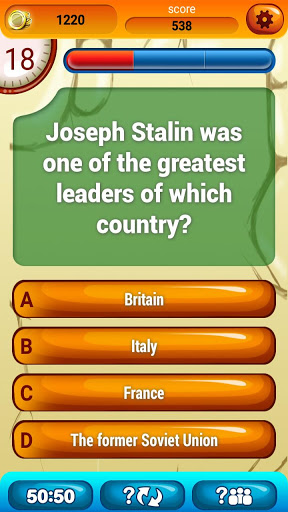 Great news for all “quiz games” addicts! If you're addicted to quizzes and love to answer history quiz questions, this is the ultimate quiz game for you! Get “History Trivia Game”, and this educational quiz will test your knowledge and help you learn new things in a fun way! Download this addictive knowledge quiz and have fun learning!