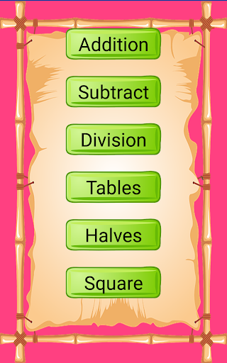 Addition, Subtraction, Division, Tables, Halves and Square. Each classification have few sub classification so everyone could select a section based on their age or ability.