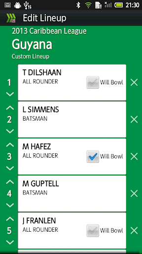 As team manager you choose the batting and bowling lineup and strategy to influence the outcome