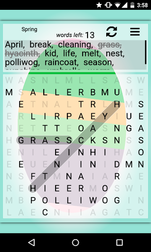 Find the words listed on the side (top in portrait view) in the letter grid in the middle. Intersecting words are hidden forwards, backwards, up, down and diagonally. When you have found all the words you have solved the puzzle!