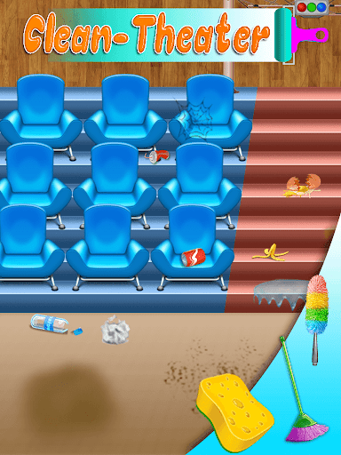 The bedroom is so messy, let’s help this little princess to clean up by dusting, mopping, arranging things like a pillow, alarm clock, piggy-bank, her toys, wiping walls and all the dirt.