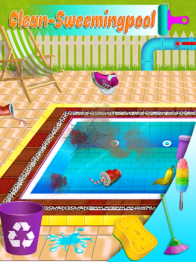 Swimming Pool is so dirty you need to remove unused things into the dust.