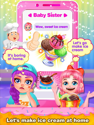 Look, your phone is ringing. The baby sister wants to have a chocolate ice cream. Let’s make one for her.