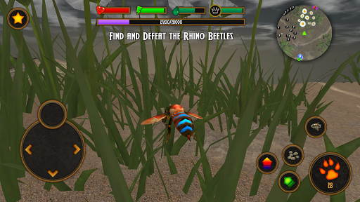 Enter the insect world as a honey bee and build your colony. Find enough worker bees to establish your colony. When your colony is large enough, the queen will arrive. You will also find yourself in head to head battles against Spider, Ant, Rhino Beetles, Ladybugs, Praying Mantis, Wasp, and Scorpion.