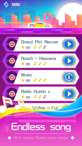 Hop Car Beat,you can play various types of music,from beautiful Piano,Guitar songs to Rock and EDM masterpieces.