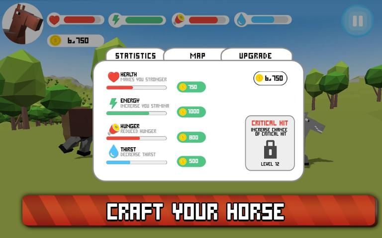 Ride a horse across blocky simulator's lands, adventures and craft are waiting for your survival! Sneak into every blocky corner. Fight with every animal you meet or run. Survival is not easy for animal, so maintain your horse energy in the simulator. Craft things to upgrade your animal. Finish all quests - in the survival simulator they can be challenging, but funny.