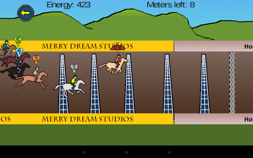 You can race faster simply by tapping the screen; however, the faster you go the faster you get tired. Find a good race strategy by balancing speed and energy. Make sure you have enough energy to finish the horse race.