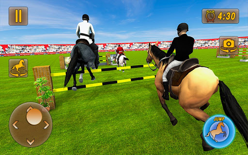 Play Mounted Horse Show 3D Game: Horse Jumping 2019 newest 3D horse simulator game show perfect equestrian skills to get victory in jump show tournament. Ultimate horse training game where you get chance to saddle up various mounted horse breeds around multiple obstacle course tracks from all over the world. Start from stable or ranch practice yard and reach at paddock and show some ultimate equestrian skills as mounted horse rider to reach at the winner’s circle. Play as horse trainer and jockey at same time in this crazy horse jump show game like never before. Experience world class mounted horse riding game in your smart phone and tablet like never before. Forget any regular mounted horse derby or some mounted horse quest game and participate in most intense jumping horse show game.