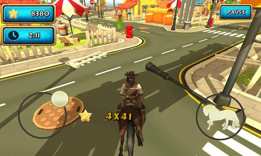 Horse simulator is action, casual adventure game, where you play as a crazy, angry, frenzy and stupid cowboy in a city. Your aim is to cause destruction, mess, wreck, demolish, ram, smash everything interactive and also annoy citizens. In your mission you gain points and experience, the faster you get them the more bonus you recieve. Town environment contains a lot of obstacles such as explosive cars, pixel fence, barrels, block lawns, streetlights, street hydrants, cube dustbins and many other. This game is good for relaxing purposes and releasing the stress.