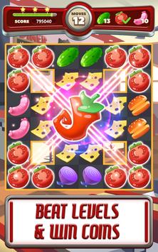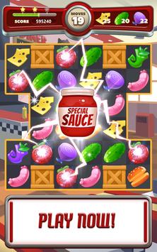 - Swap and match 3 or more ingredients of the same kind to burst them. Pickles, chips, hamburgers, sauces and yummy soda soft drinks.