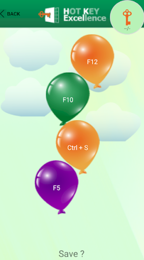 The game contains 6 topics and each topic has 10 shortcuts to learn. You receive three keys for the correct answer in order to reach the target of 180 keys for the whole game. The questions will appear on the screen and you will have to pop up the balloon that contains the right answer.