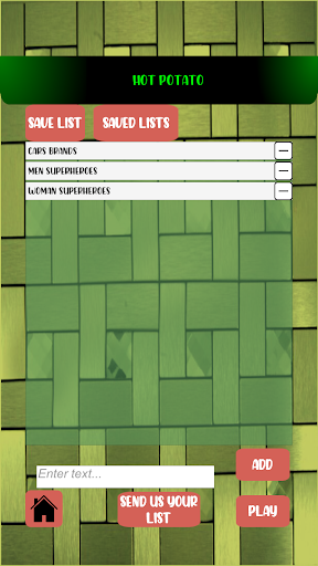 Put your phone in the table and start the game, every person has to say a thing about the theme shown, the first person that repeat an answer or that get the potato exploded lose