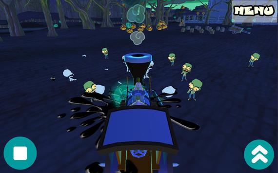2. Three big thematic tracks! Halloween track with pumpkin car and many zombies! Christmas racing track with snowmans and penguins, and the real hot racing monster track with flames of fire from wheels!