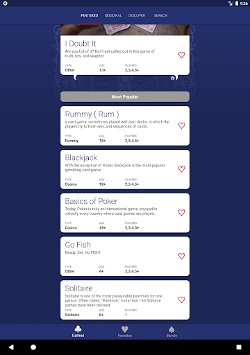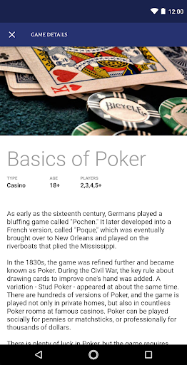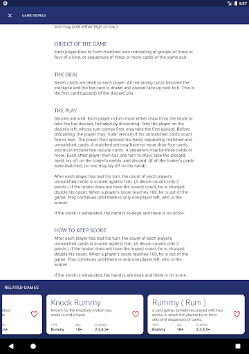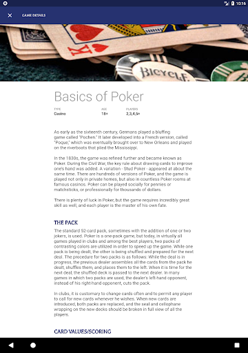 • Find rules for your favorite games such as Rummy, Poker, and Euchre