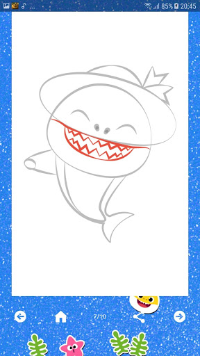 How to draw Baby Shark is an app very simple to use and quickly learn how to draw Baby Shark, Dady Shark, Mamy Shark and more.