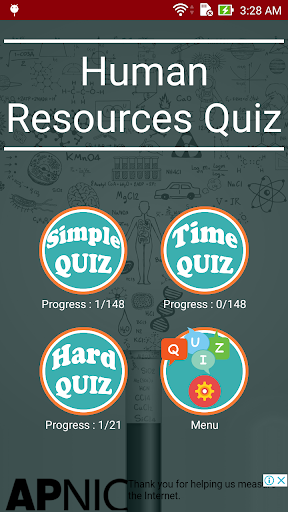 Using this Human Resources(HR) Quiz Quiz game learn, spend some free time with it, have fun playing it. It has 3 types which is simple quiz, time quiz and hard quiz.