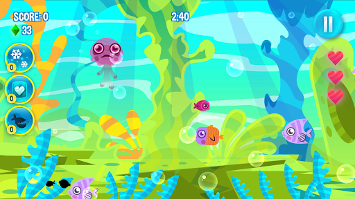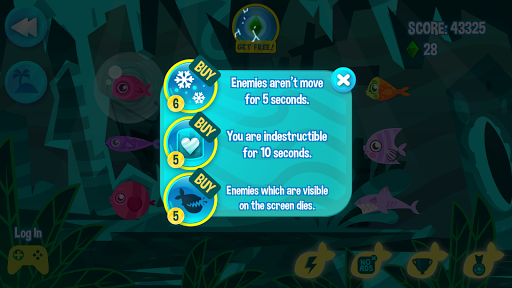 On the bottom of the screen, you can check which fish you might consume at the moment. Your fish will follow your orders and when you tap on the screen, it will move to the tap location. If it finds a fish smaller than itself on its way, it will eat it automatically. Tap the fish!