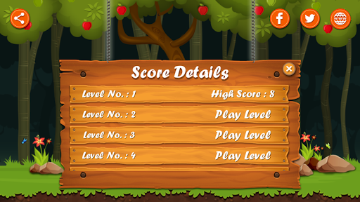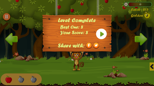 To start with, the monkey has two lives which increase with the levels and a life key can be achieved by catching three consecutive golden apples. The life key can also be preserved and used in the next levels if a player manages to complete a level with the default life setting and within the time frame (from level 4 and onwards)