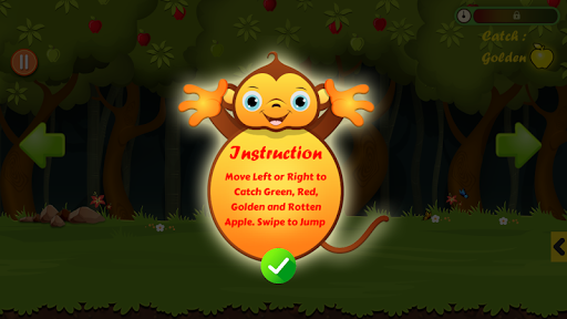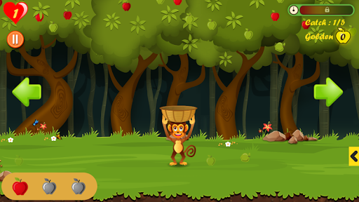 The monkey is hungry and is looking for something to eat. Apples are on the offer and there are different types of apples, (Golden Apple, green apple, red apple and rotten apple) which when collected increases or decreases the number of points a player can accumulate. There are 10 fun levels of the game with the difficulty set to increase as you go up the levels. The number of apples that can be collected increases with each level and from level 5, there is also a timer that gets activated that puts a time constraint over the number of apples that can be collected.