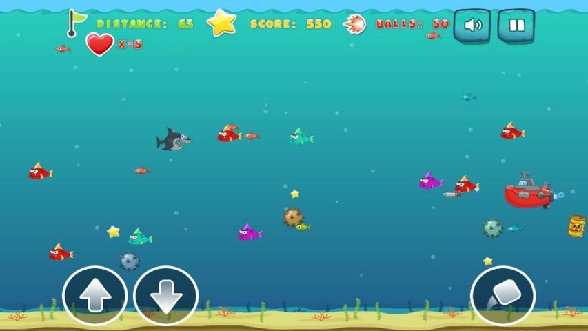 Hungry Shark Hunter, is a fascinating and beautiful game in which you have to collect fish, stars, life, super features and various improvements and destroy submarines, mines, missiles and radioactive barrels!