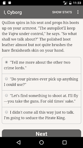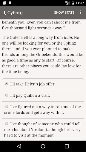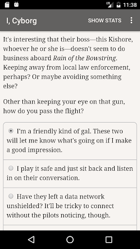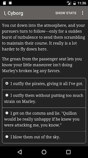 "I, Cyborg" is a 300,000-word interactive science-fiction novel by Tracy Canfield. It's entirely text-based, without graphics or sound effects, and fueled by the vast, unstoppable power of your imagination.