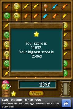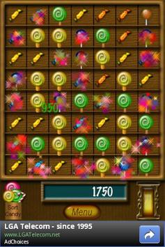 The game has five levels of difficulties. With the increase of the number of candies, the difficulty of matching increases. However the game introduces some candies with its unique features so that player can creatively make use of them to achieve higher score. Player who achieved certain scores will be rewarded with an achievement in Openfeint.