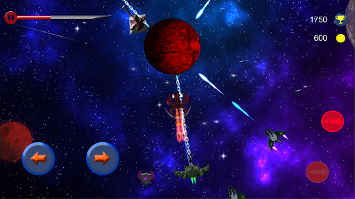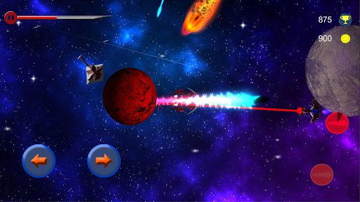 Rotate around the axis of your planet with your spaceship and destroy enemy spaceships and meteors.
