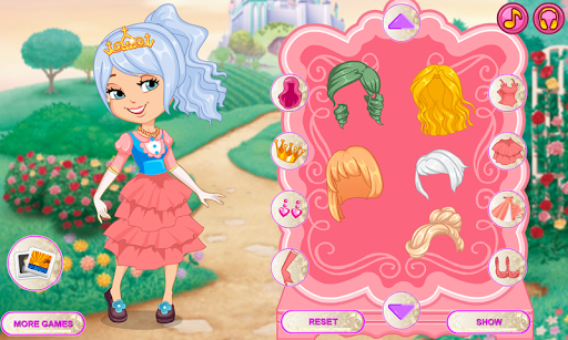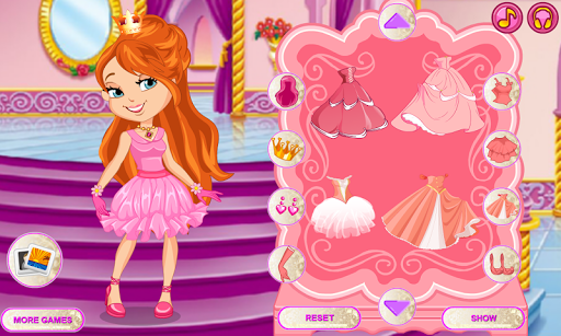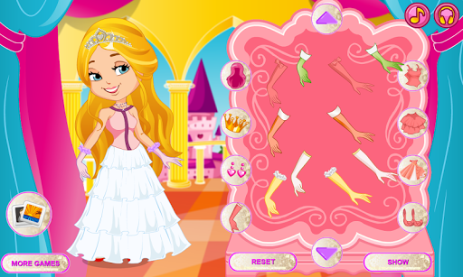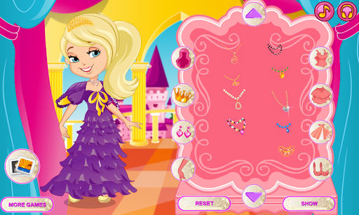 The game is perfect for any princess to play and enjoy. This dress up princess game allows you to dress up your princess by clicking on the 9 icons multiple times to choose the perfect outfit. Each icon represents hair, crown, earring, gloves, top skirt, dress, shoes and background.