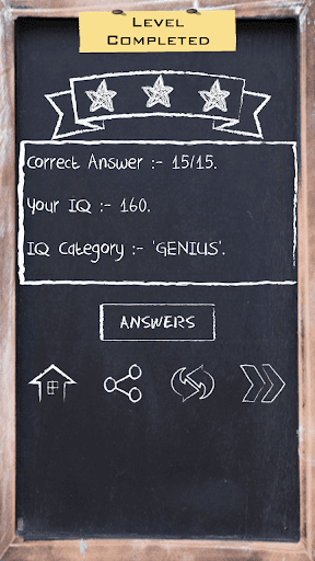 IQ Test is IQ quiz app where you been asked some question to measure your IQ Level or IQ Scale, After submitting answer our algorithm will evaluate your IQ Scores. IQ Test will help you to boost your IQ scores or IQ Level. Be a better with each IQ Test and Score Highest IQ and place yourself in the category of Genius IQ people. Share your IQ Scores with your friends, families and near and dear ones.