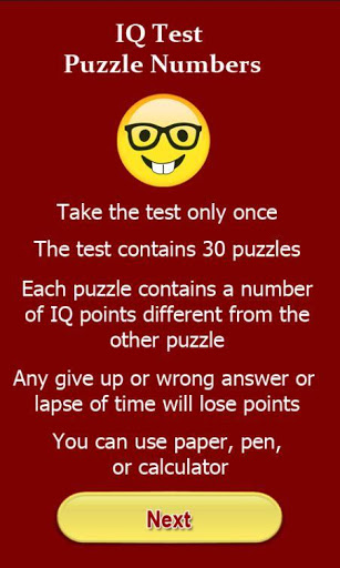 Do you wonder how intelligent you are? Then you are in the right place! Where this application will measure your way of thinking to solv 30 puzzle numbers, Then the application will give you the degree of intelligence you deserve.