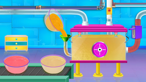Start your busy working day by driving the milk tank from warehouse to factory. Buy bakery ingredients from supermarket. Place in cart & pay at cash counter. Wash the fruits in kitchen before cutting them like a little ninja chef. Drag the pieces of fruits in large grander, add the sugar and grind them to make fruity pulp. Drag the fruit pulp bowl on conveyor belt. Repair the rusty generator with cleaning & repairing tools. Add milk & pulp in large mixture tank and mix gradually. After mixing liquid, pour in the mixture and fill the blocks with salt and ice for cooling process. Pour the ice cream in wafer cones. Add toppings like jelly beans, sprinkles, nuts & syrup from top by rotating machine. After wrapper selection design the wrapper / ice cream cup according to the Ice Cream by dragging images on the wrapper.